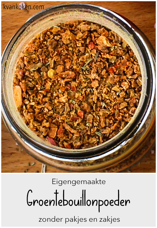 Nadat ik had gelezen dat de ingrediënten van een bouillonblokje werden verkregen door het koken van slachtafval in kokend zoutzuur om dat vervolgens met natronloog weer te blussen verging mij de lust om ze te gebruiken. Even zoeken op internet en mijn eigen draai toegevoegd kom ik vandaag met een recept om eenvoudig zelf een heerlijke bouillonpoeder te maken. Tijdrovend? Ja wellicht maar het meeste tijd verstrijkt terwijl ik lig te slapen.
