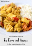Altijd een fantastische combinatie, zacht gebakken kipfilet blokjes met kerrie en ananas. In deze schotel heb ik ook ui, knoflook en paprika toegevoegd en het romig gemaakt met crème fraîche. Overigens kun je die laatste ook vervangen door Griekse yoghurt, dat maakt het minder calorierijk. Ik gebruik graag een lepeltje garam masala in deze schotel omdat de gebrande kruiden zo’n fijne diepe toon aan de kerrie geven. Kortom, een heerlijk simpele eenpansmaaltijd die ook nog eens redelijk koolhydraat-bewust is. Wil je echt de hoeveelheid koolhydraten beperken laat dan de ananas (13,5 kH) eruit.