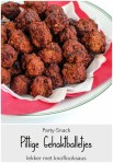 Deze mini eenhaps-snacks stonden jarenlang in onze familie bekend onder de dubbelzinnige naam ‘De ballen van Jan‘. Mijn broertje produceerde op elk feestje enorme hoeveelheden van deze pittige hapjes, waarbij hij soms zodanig uitschoot met de sambal dat het je de tranen in de ogen deed springen, maar ze vonden altijd gretig aftrek. Ik wil jullie deze ‘party-cracker‘ dus niet onthouden.