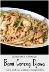 Ik ben dol op bami. Lange tijd dacht ik dat ik dat hier in Portugal niet kon eten, tot ik op een ochtend wakker werd en me in een flits bedacht dat de mie uit de bami gewoon een soort pasta is. Feitelijk is het de moeder van alle pasta’s uit Italië, als we ervan uitgaan dat de ontdekkingsreiziger Marco Polo in 1292 de pasta meenam uit China. Dus even nakijken op internet en inderdaad, voor bami kun je gewoon een pasta nemen. In dit geval heb ik gekozen voor de iets plattere spaghetti, de fettuccine. Nee, die zitten niet in nestjes gevouwen, maar dat hoeft helemaal niet. Ik breek de lange stengels in drie delen voor ik de pasta kook. Niet van bami te onderscheiden, ik zweer het je!