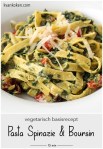 De combinatie spinazie met een knoflook-kruidenkaas zoals Boursin, is verre van origineel, maar daarom niet minder lekker. In onderstaand recept nu eens niet automatisch gecombineerd met iets anders, maar gewoon zo, pasta, spinazie en boursin. De combinatie laat ik dan aan jou over. Leg er een mootje zalm op, snij er wat kip door of lekker met noten en champignons. Een basisreceptje om op voort te borduren.