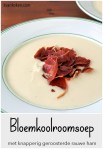 Het heeft mij altijd verbaasd waarom bloemkoolsoep niet voorkomt in het bekende assortiment zoals kippensoep, tomatensoep, aspergesoep, champignonsoep en ossenstaartsoep. De bloemkool, zowel de roosjes als de stam, leent zich uitstekend tot het maken van een gebonden voedzame soep. In dit recept heb ik er een mooie gladde crème van gemaakt en die vervolgens een beetje aangekleed met knapperig gebakken rauwe ham. Heel lekker is deze soep ook in combinatie met bijvoorbeeld gerookte zalmsnippers.