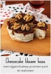 Voor de verjaardag van mijn klaverjasmaat, de grote vriendelijke reus uit Rotterdam, maakte ik een verjaarstaartje. Het is geen zoetekauw, dus ging ik aan de slag met de meest letterlijke betekenis van het woord ‘cheese cake’; een taart van romige blauwe kaas op een knapperige bodem met tijm, knoflook en peterselie en afgewerkt met een laagje vijgenchutney met port en pruimen en walnoten.