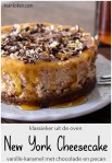 Voor Vânia, die erg van zoet houdt, bedacht ik deze versie van de New York Cheese cake, vanille met karamel en geraspte mokkachocolade. Lekker met pecannoten in de bodem en eigengemaakte karamelsaus om erover te gieten.