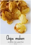 Portugezen zijn net als wij Nederlanders en Belgen gek op gefrituurde aardappels. Natuurlijk in de vorm van frietjes, maar ook gefrituurde aardappelblokjes en aardappelschijfjes, chips dus. Wanneer je bij een kraam op de markt gegrilde kip gaat eten serveren ze daar vaak gewoon een zak chips bij. In een restaurant serveren ze ze soms wel vers; ‘batatas fritas às rodelas’ oftewel patat friet in plakjes. Je kunt ze verrassend eenvoudig zelf maken. Je hebt er wel een mandoline voor nodig, en dan bedoel ik niet het bekende muziekinstrument van Mien, maar zo’n plastic schaaf met een vlijmscherp mesje erin waarmee je de aardappel in ragfijne plakjes kunt snijden.