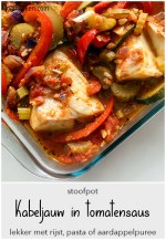 Veel groenten in tomatensaus lekker met kort gestoofde kabeljauw