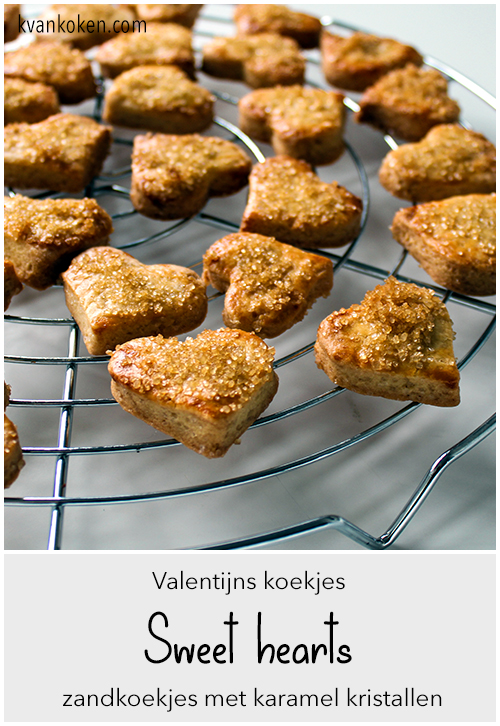 Sweets for my sweet, sugar for my honey….. Dit liedje uit de jaren ’60 van de ‘The Searchers’ zat verankerd in mijn hoofd toen ik deze koekjes aan het bakken was. Het moesten lekker knapperige hartjes worden met gekarameliseerde suiker erop als kleine strass-steentjes.