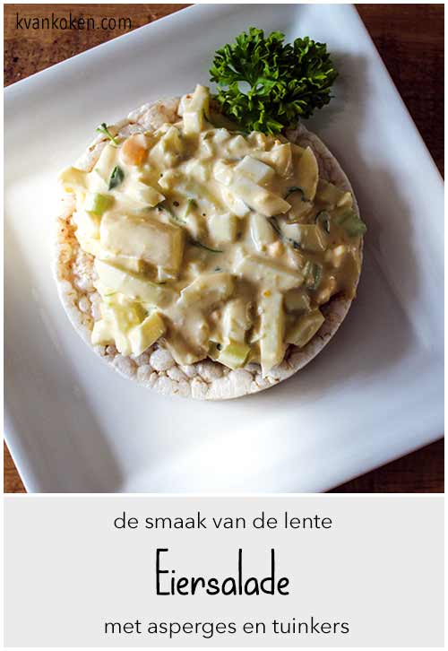Zoals aardbeien horen bij hoogzomer en speculaas bij december, zo horen asperges, eieren en tuinkers voor mij bij het voorjaar. In deze eiersalade heb ik de smaken gecombineerd en het resultaat is verrassend lekker op een broodje of een toastje, maar ook heerlijk op een rijstwafel met zeezout. Hiermee zet je een voedzame en koolhydraatarme lunch zo op tafel.