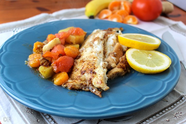 Dit is er typisch een die past in de Engelse uitdrukking ‘you love it or you hate it’. Er zijn mensen die gruwen van deze retro visschotel met gebakken fruit, maar net als mijn oma ben ik er dol op. Nee, natuurlijk geen fruitcocktail uit blik en ook niet al te zoet. Verse ananas, mandarijn, banaan met stemgember en tomaat. Zo houd ik net het midden tussen zoet en fris.