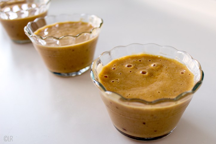 Serveer in een grote schaal of in aparte bakjes. Desgewenst kun je de bovenkant nog decoreren met geroosterde stukjes amandel of verkruimelde mariakaakjes. Wij zijn niet zo van stukjes in de mousse dus heb ik het hier weggelaten.