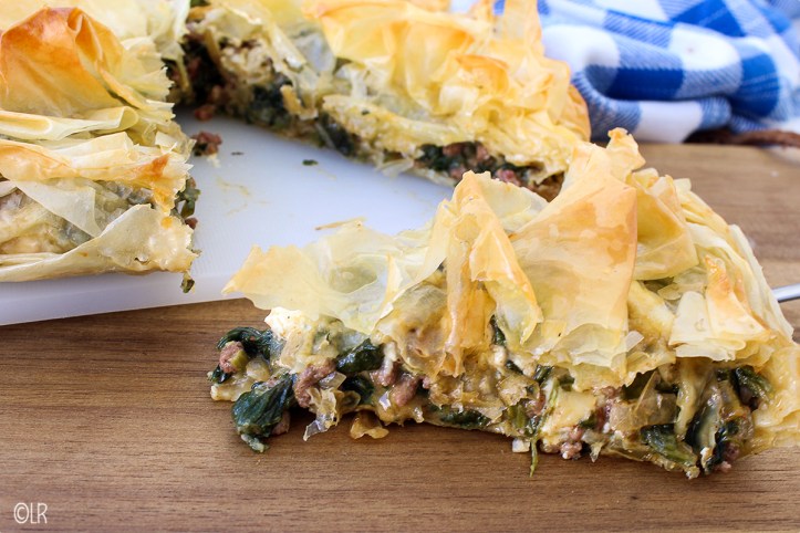 Flinterdun knapperig filodeeg gevuld met gehakt, spinazie en fetakaas. Als je dan toch niet op reis mag, dan haal je het lekkerste van je vakantieland gewoon naar je eigen keuken. Deze hartige taart is zowel warm als koud heel lekker.