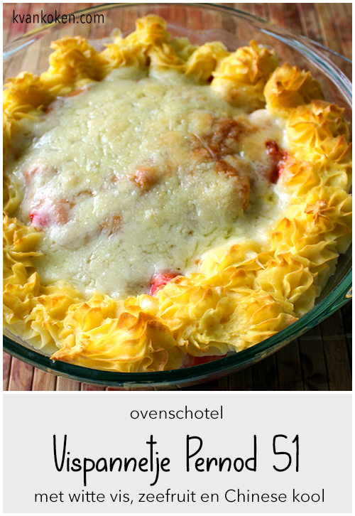 Denk nu niet dat je dronken wordt van dit vispannetje. Er gaan maar een drupje anijslikeur in, maar wat overblijft is de zachte anijsachtige of venkelachtige smaak die het zo goed doet bij vis.