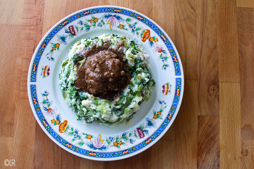 Als je bij deze rijkgevulde stamppot nog een bijgerecht wil serveren, kies dan voor een gehaktbal zonder bloem, brood of paneelmeel. In rookworst vind je vaak toegevoegde suikers, dus dat is helaas geen optie als je koolhydraatarm wil eten. Vers gemaakte worst met enkel kruiden en zout kan natuurlijk prima.