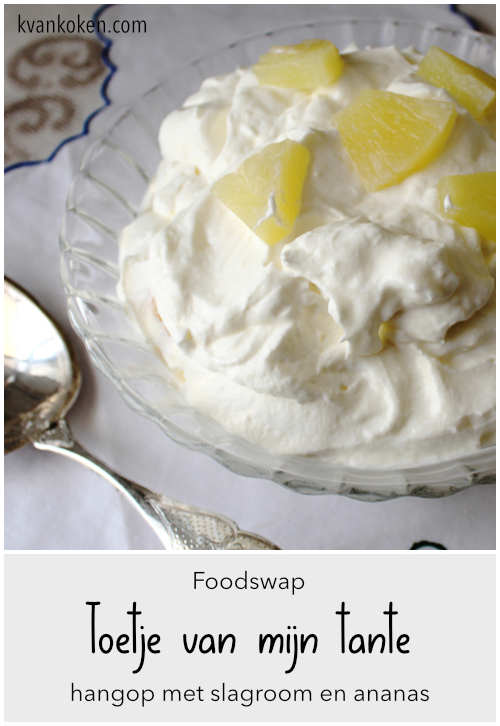 Deze maand doe ik voor het eerst mee met een foodblogswap, eigenlijk meer een recipe swap omdat we geen voedsel of blogs ruilen, maar recepten. Ik mocht iets uitkiezen van Elsarblog, de meer dan aantrekkelijke blog vol recepten, lifestyle, reis- en interieurinspiratie van de oorspronkelijk Portugese Elsa. Naast de nodige Portugese recepten vond ik er ook een dessert met de mysterieuze titel ‘het toetje van mijn tante’. Tot mijn verrassing was het ook het toetje van mijn tante. De twist zit hem in het feit dat mijn tante geen kwark gebruikte, maar hangop, uitgelekte yoghurt of karnemelk. Hierdoor duurt de bereiding wel iets langer en is de smaak ook lichtzuur en romig.
