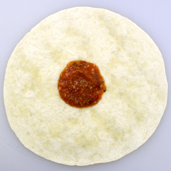 o Bestrijk de bovenkant van de tortilla dun met de basissaus;