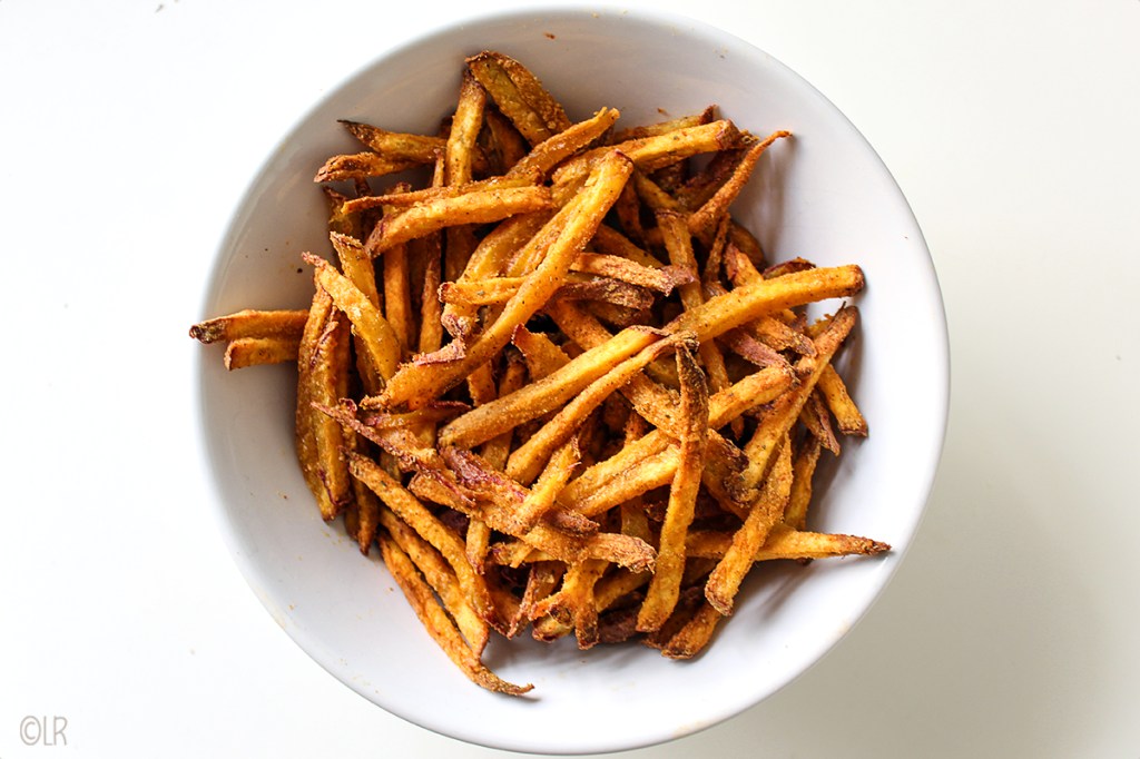 Laatst kreeg ik van mijn vriendin A. een paar enorme zoete aardappelen. Ik ben gek op zoete aardappel en gek op friet, dus ga ik eens kijken of ik daar iets mee kan.