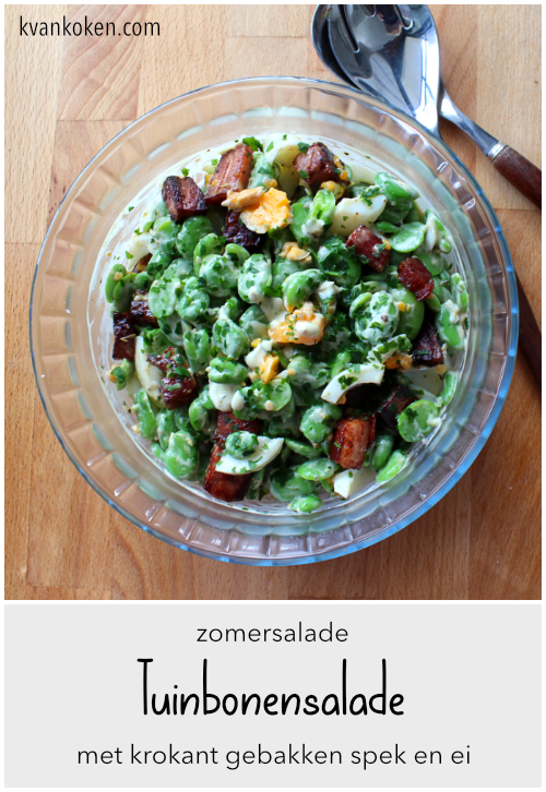 Als je dan, net als Assepoester, helemaal bent uitgedopt, dan volgt hier de beloning voor al dat geduldige werk. Een voortreffelijke salade waar we de milde dubbelgedopte boontjes gaan combineren met krokant gebakken bacon en hardgekookte eieren.