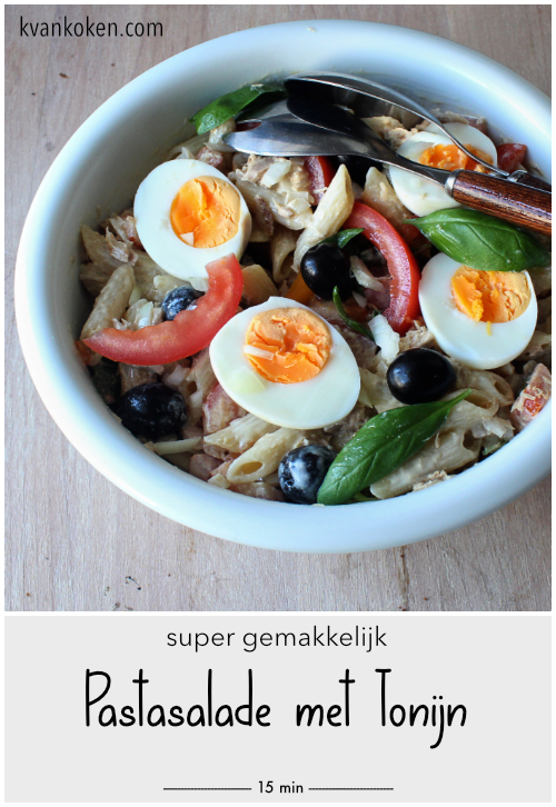 Afijn, dit is het geworden. Het is warm vandaag, ik heb geen zin in de keuken, maar wel in iets lekkers. Eigenlijk heb ik dit altijd wel in huis. Geen tomaten? Dan stop ik er iets anders in, komkommer bijvoorbeeld, of diepvries erwtjes of mais uit blik.