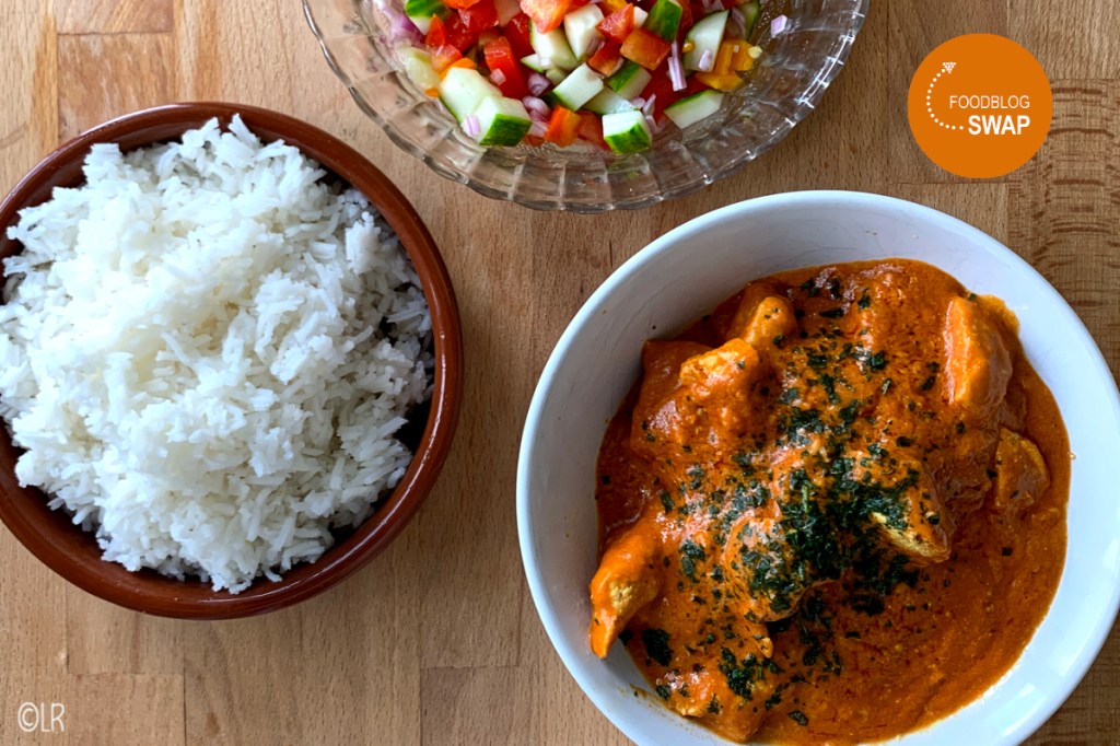 Ik koos voor de Indiase butter chicken. Een milde, romige curry, waarbij de kip wordt gemarineerd in yoghurt en gebakken wordt in ghee, de geklaarde boter uit India. In de foodswap is het de bedoeling een eigen draai aan het recept te geven. Zo heb ik aan de marinade wat gerookte paprikapoeder toegevoegd om een beetje diepte in de smaak te krijgen.