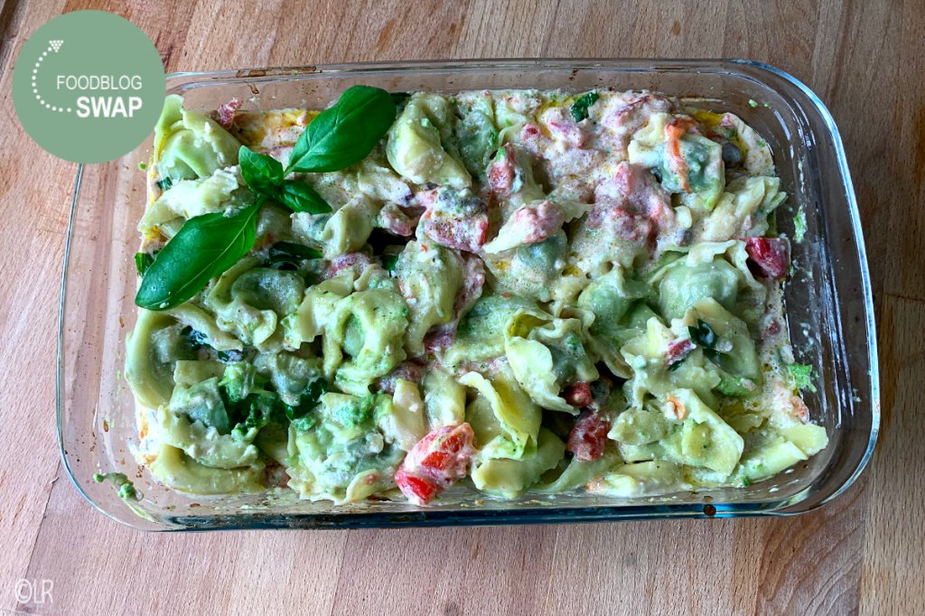 En toen wist ik het! Mijn twist deze maand is een combinatie van beide recepten. Ik neem tortellini gevuld met spinazie in plaats van spaghetti en paprika in plaats van tomaten.