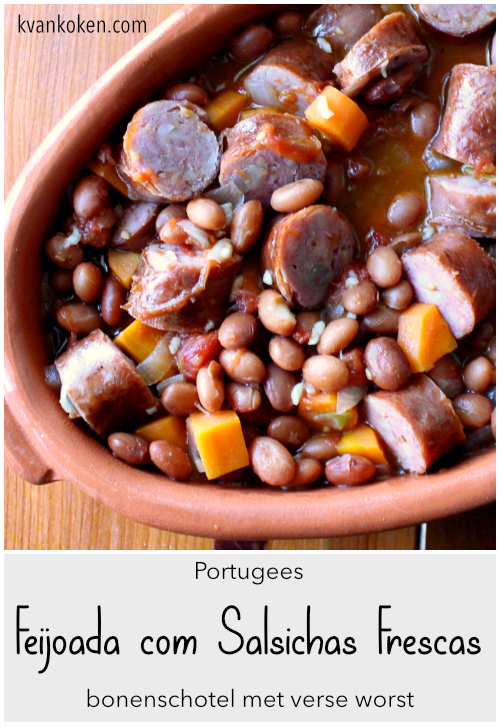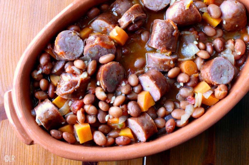 Hoewel Portugal een mild klimaat heeft als je het vergelijkt met Nederland, kan het hier in de winter ook gemeen koud worden. Dan is het tijd voor een feijoada [fei-zjò-a-da]. Een maaltijd om je aan te warmen als de wind om het huis giert en de regen tegen de ramen striemt. Heerlijke romige bonen met knapperig gebakken worstjes. Serveer de schotel met rijst of vers gebakken brood.