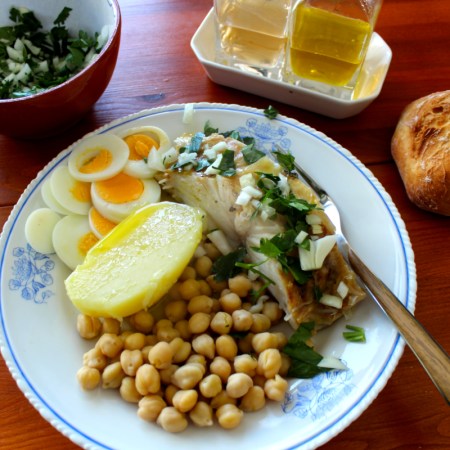 Bacalhau com grão de bico – Gezouten klipvis met kikkererwten