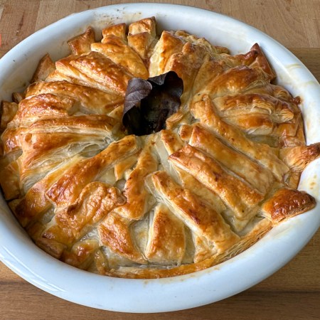 English Pie van broccoli met gehakt, feta en champignons