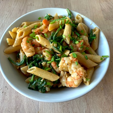 Pastasalade gamba’s en spinazie