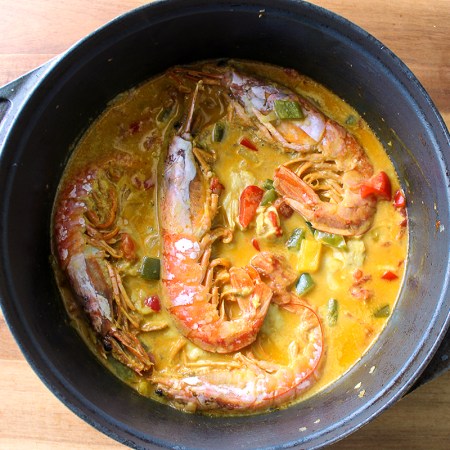 Caril de salmão, camarão e abóbora – Kerrie van zalm, garnalen en pompoen