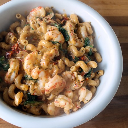 Macaroni met knoflookgarnalen