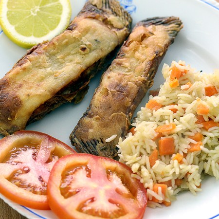 Pescada dourada com arroz de manteiga – Portugese vissticks met boterrijst