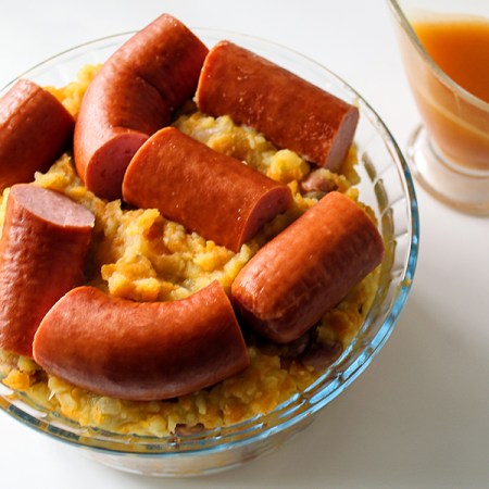 Spruitenstamp mosterd met rookworst